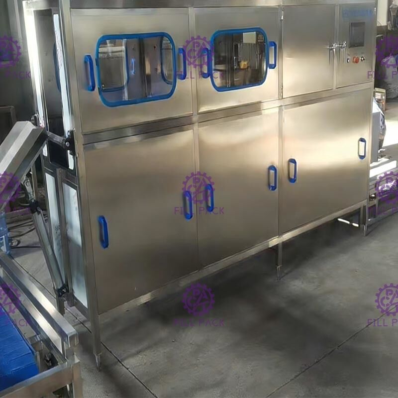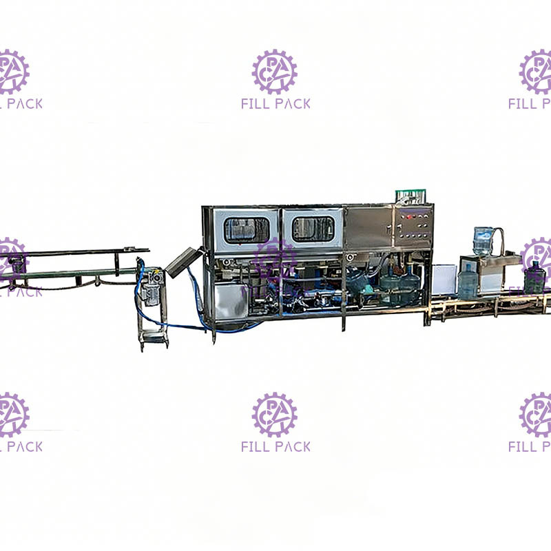 L'ensemble de la ligne de remplissage d'eau de seau comprend un décapteur et une machine à laver semi-automatique, un rinceur-remplisseur-capteur monobloc, un convoyeur à rouleaux, un tunnel de rétrécissement d'étiquettes, une lampe de vérification, une machine de codage à rouleaux d'encre solide