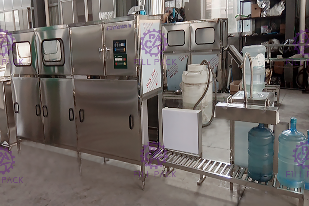 L'ensemble de l'usine d'embouteillage d'eau de 5 gallons comprend un décapteur et une machine à laver semi-automatique, un rinceur-remplisseur-capteur monobloc, un convoyeur à rouleaux, un tunnel de rétrécissement d'étiquettes, une lampe de contrôle, une machine de codage à rouleaux d'encre solide