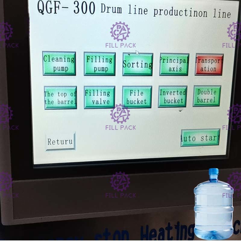 Après que la machine de remplissage de 20L soit bien installée, entrez par le tuyau d'eau, le tuyau de drainage et la puissance, la puissance de l'air.