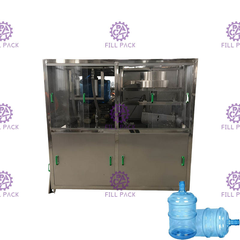 L'installation de remplissage de gallons intègre le lavage, le remplissage et le bouchage.