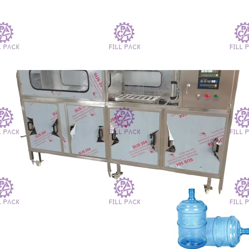 Cette machine de remplissage de bouteilles de 5 gallons est intégrée avec des fonctions de lavage-remplissage-couvercle ensemble;
